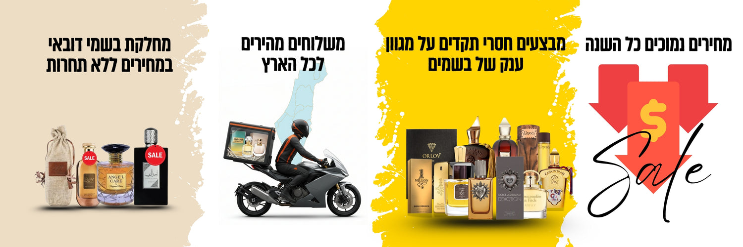 אנחנו חנות אונליין ישראלית שמכילה ליין של אלפי מוצרים מתחום הבישום, האופנה והטיפוח ממגוון מותגים בינלאומיים. לניווט קל חפשו את המוצרים האהובים עליכם בבר החיפוש בראש הדף או הקליקו על הקטגוריה הרצוייה בתפריט כדי לראות את הקולקציה המלאה. המשלוחים שלנו מגיעים לכל רחבי הארץ והם אפילו חינם בכל רכישה מעל ₪300.