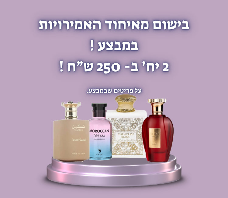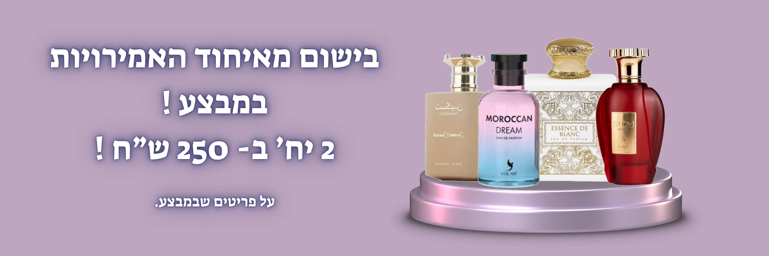 אנחנו חנות אונליין ישראלית שמכילה ליין של אלפי מוצרים מתחום הבישום, האופנה והטיפוח ממגוון מותגים בינלאומיים. לניווט קל חפשו את המוצרים האהובים עליכם בבר החיפוש בראש הדף או הקליקו על הקטגוריה הרצוייה בתפריט כדי לראות את הקולקציה המלאה. המשלוחים שלנו מגיעים לכל רחבי הארץ והם אפילו חינם בכל רכישה מעל ₪300.